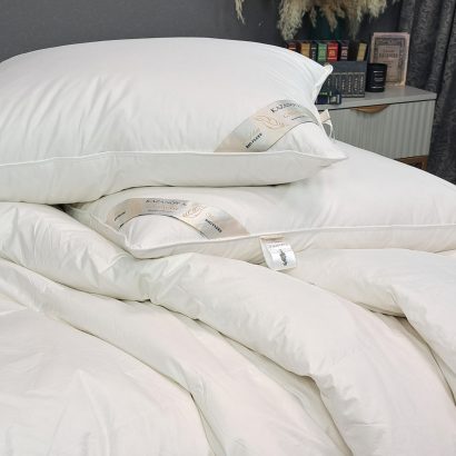 Чехол выполнен из 100 % натурального хлопка — ткани, сотканной из тончайших хлопковых нитей высокого качества, идеально ровных по толщине. Благодаря этому полотно остаётся лёгким и «воздушным»,  прочным и износостойким. Такое качество хлопка идеально подходит для изготовления чехлов премиальных пуховых подушек и одеял.