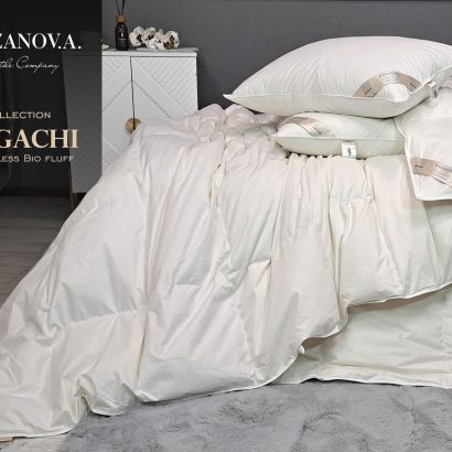 Пух Гагачи — мягкий и лёгкий, прекрасно пропускает воздух и создает идеальный микроклимат для сна. Нежная структура пушинок и отборных микро-перышек помогает им естественно сцепляться между собой и образовывать однородный объём. Изделия с наполнителем GAGACHI рекомендуется взбивать перед использованием, это помогает сохранять пышность и комфортные свойства на долгие годы.