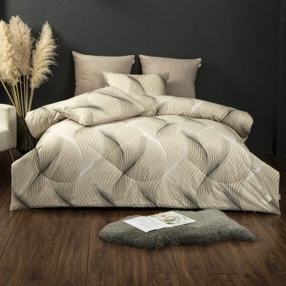 Одеяло: верхняя ткань – роскошный мягкий велюр, низ – высококачественный сатин — 100% египетский хлопок. Наполнитель одеяла 100% микрогель.