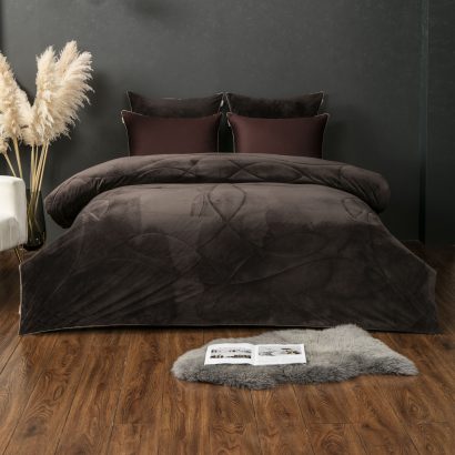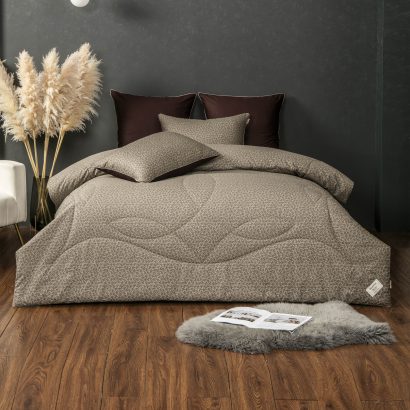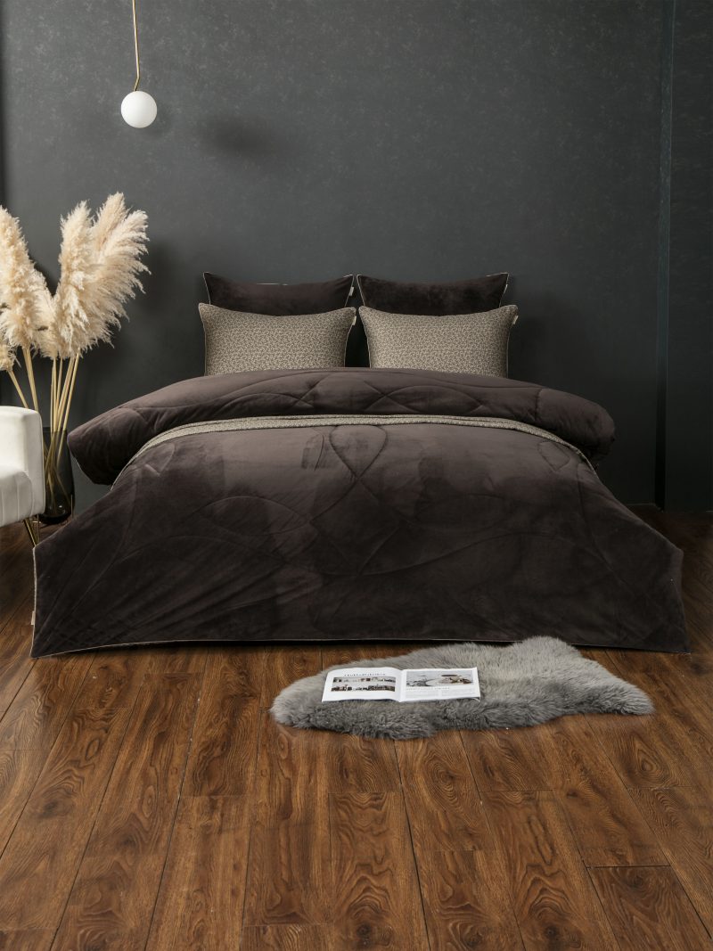 Одеяло: верхняя ткань – роскошный мягкий велюр, низ – высококачественный сатин — 100% египетский хлопок. Наполнитель одеяла 100% микрогель.