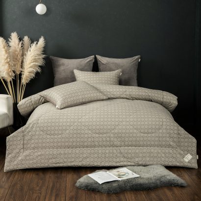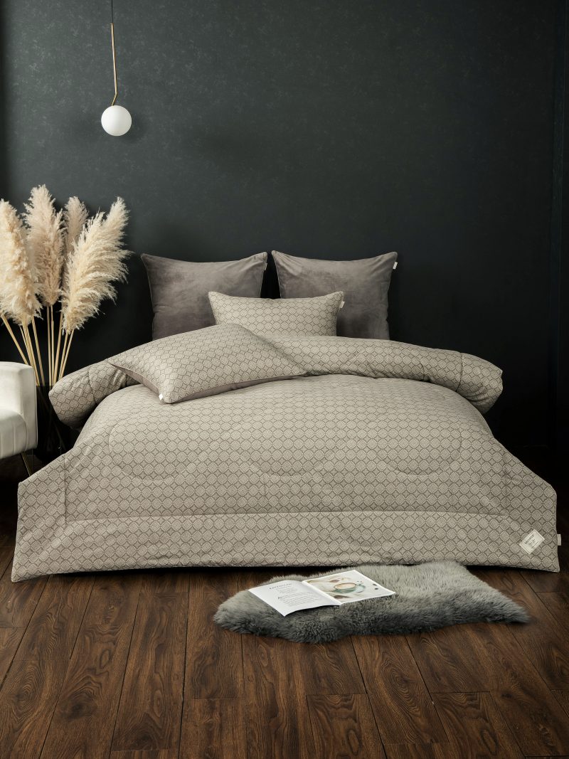 Одеяло: верхняя ткань – роскошный мягкий велюр, низ – высококачественный сатин — 100% египетский хлопок. Наполнитель одеяла 100% микрогель.
