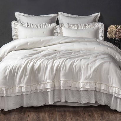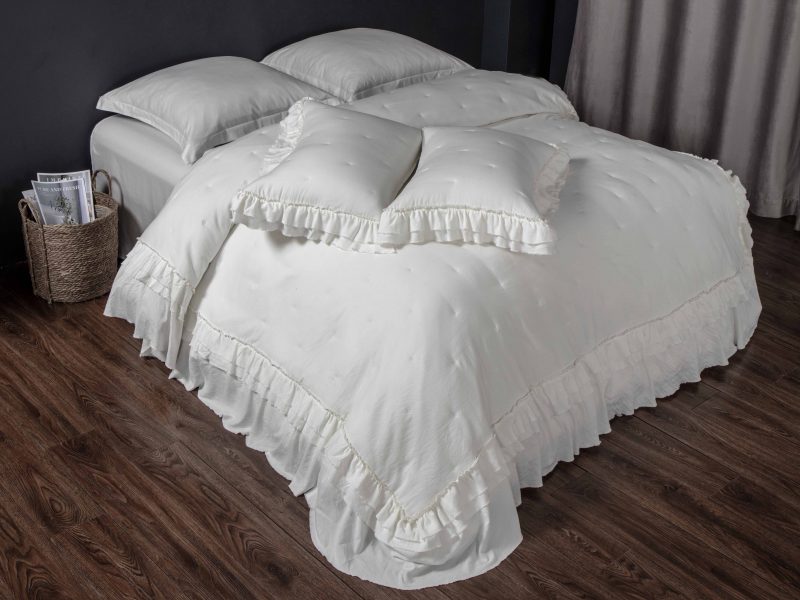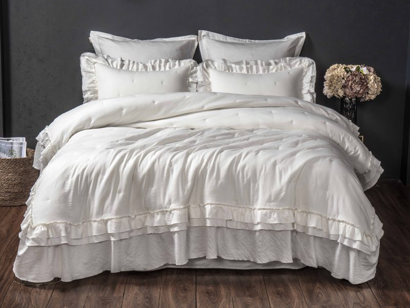 Одеяло: 200х220 (+25 см — трёхъярусный волан) — 1шт. с воздушным наполнителем Эко-волокно «Микрогель» украшено «Пикованной стёжкой»