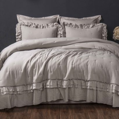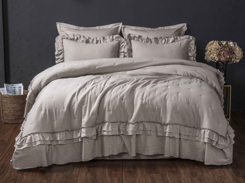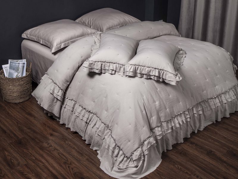 Одеяло: 200х220 (+25 см — трёхъярусный волан) — 1шт. с воздушным наполнителем Эко-волокно «Микрогель» украшено «Пикованной стёжкой»