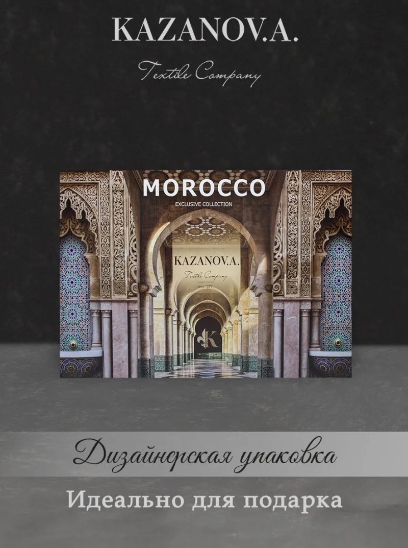 Премиальная коллекция «MOROCCO» от KAZANOV.A. Коллекция «MOROCCO» выполнена из эксклюзивного жаккардового двухстороннего муслина, изготовленного из лучшего в мире длинноволокнистого 100% хлопка. Особенность жаккардового муслина заключается в том, что нити предварительно окрашиваются по специальной технологии и лишь затем сплетаются в изысканный узор. Благодаря этому цвета не тускнеют со временем, а ткань остаётся невероятно нежной и воздушной. Дизайнерская идея коллекции позволяет менять стиль спальни ежедневно — от минимализма до сложной текстильной композиции. Переворачивая одеяло и подушки, вы легко создаёте новые стилистические акценты и обновляете интерьер с минимальными усилиями. Наполнитель в одеяле — инновационное Эко-волокно «Микрогель», обеспечивающее превосходную терморегуляцию. Чехол одеяла выполнен из двойного слоя тончайшего жаккардового муслина. Это дарит ощущение воздушной лёгкости. В тёплый весенне-летний сезон двухслойное муслиновое одеяло поддерживает идеальный баланс температур, создавая оптимальный микроклимат для сна. Премиальный статус коллекции подчеркивает элегантная отделкой руликом из шенилла, которая искусно завершает дизайн каждого элемента и придаёт всему комплекту утончённость и изысканность. Коллекция представлена в 3х комплектациях: евро, семейное, полуторное. Роскошная упаковка: Каждый комплект упакован в дизайнерскую коробку, что делает его идеальным выбором для подарка на любое торжество. «MOROCCO» от KAZANOV.A. — коллекция, в которой стиль и практичность идеально сочетаются, превращая ежедневный отдых в изысканное наслаждение.