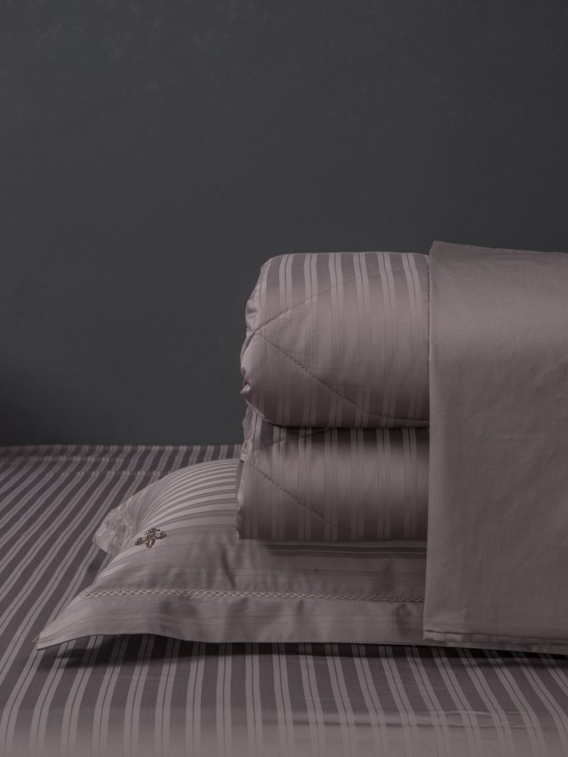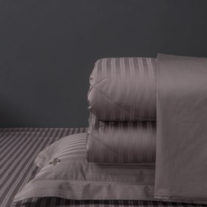 Stripe Royal — премиальная коллекция постельного белья со стёгаными одеялами: современное звучание классики в эстетике KAZANOV.A. Stripe Royal из 100% египетского хлопка — как клавиши рояля, собранные в изысканную мелодию спальни. Здесь есть тонкая игра света и тени: полосы ведут взгляд и настраивают на баланс и гармонию погружая в королевский сон. Рисунок стежки вторит этому звучанию и завершает архитектуру образа. Отделка задаёт характер: ювелирная подпись Fleur-de-Lis из высококачественных страз — на одеяле и наволочках 50/70. Стёжка одеяла — функциональная эстетика. Декоративная вышивка по ушку наволочек 50*70. Состав и материалы: ткань комплекта: 100% египетский хлопок, страйп-сатин. Наполнитель одеяла: 100% эковолокно микрогель — лёгкий, гипоаллергенный, с равномерным распределением тепла и комфортной терморегуляцией.