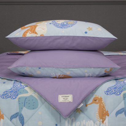 Всесезонная коллекция «Kids Cotton» представляет собой комплект постельного белья и легкого одеяла, в комбинации цветного сатина двух видов.