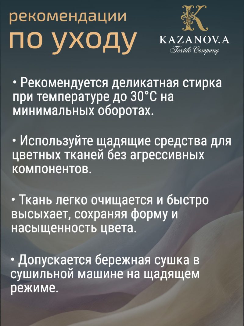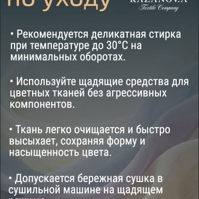Уход: деликатная стирка при 30С, не использовать хлорсодержащие отбеливатели.