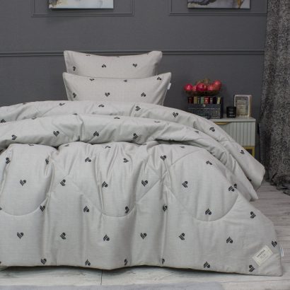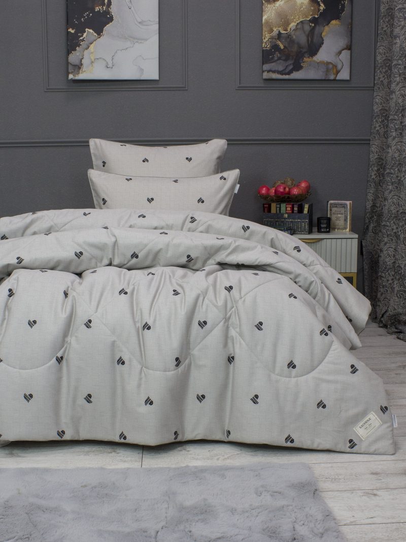 Комплект состоит из легкого двустороннего одеяла, с оригинальным дизайном стежки, отделанное руликом с 3х сторон. Легко стирается, не требует глажки, быстро высыхает, что позволяет пользоваться им в любое время года.
